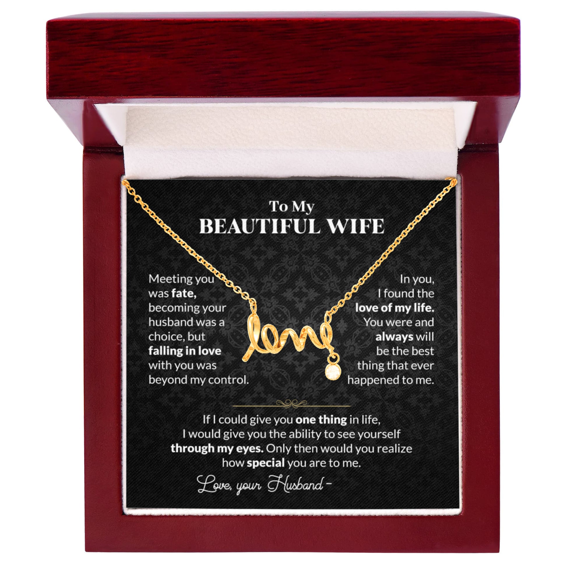 Thoughtful Romantic Wife Gift - Jewelry from Husband for Any Occasion - Scripted Love Necklace