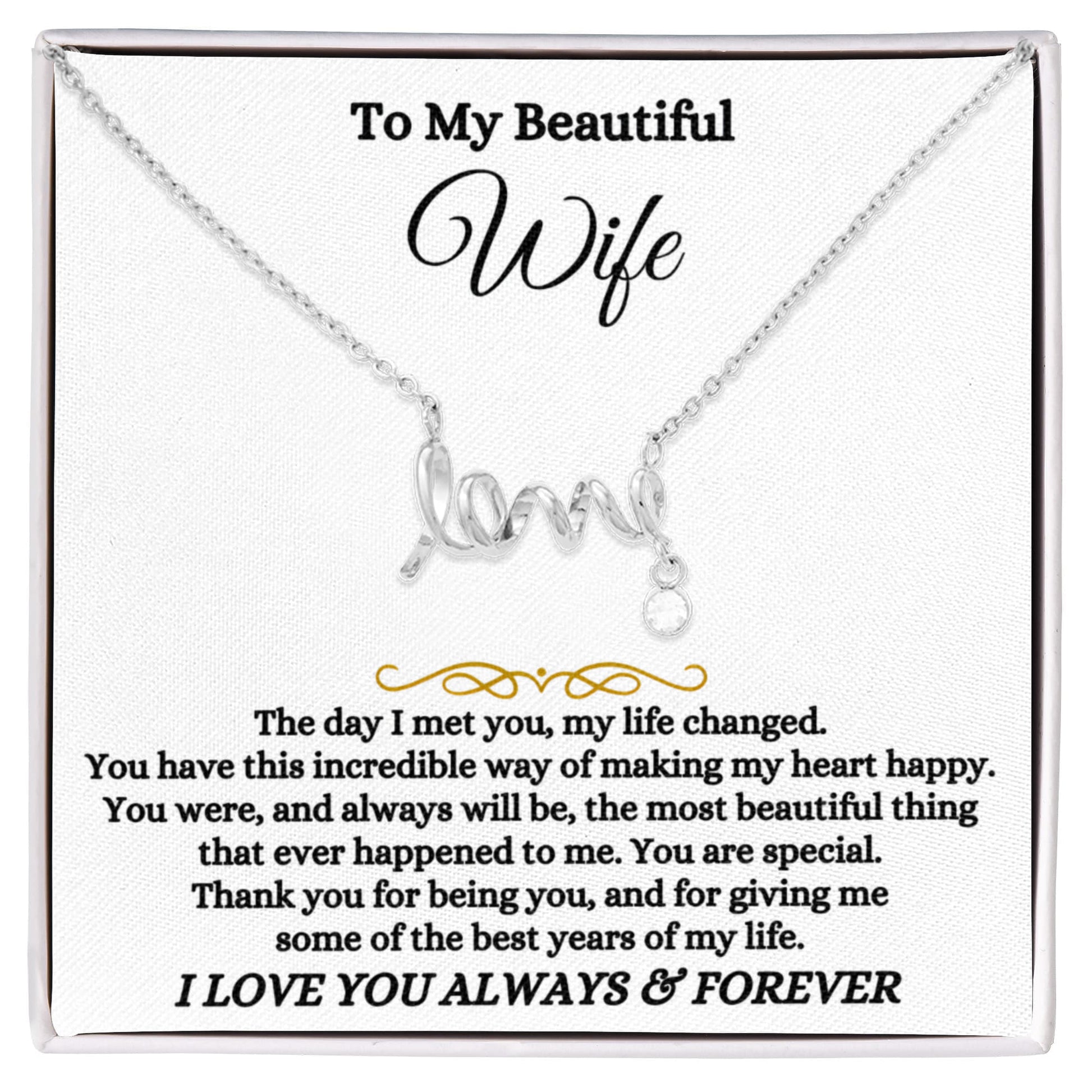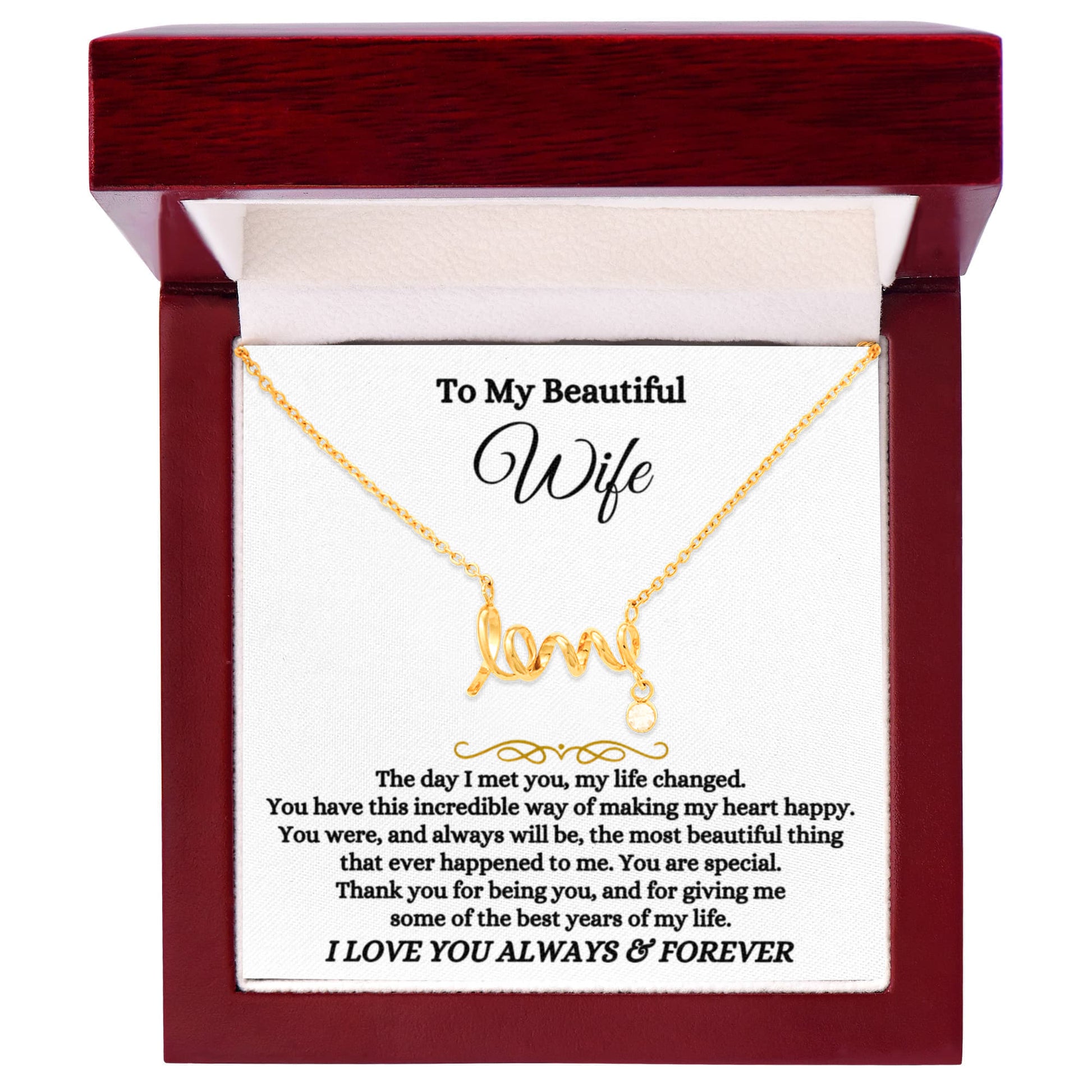 To My Wife Necklace - Loving Jewelry from Husband for Birthday, Valentine’s Day & Holidays - Scripted Love Necklace
