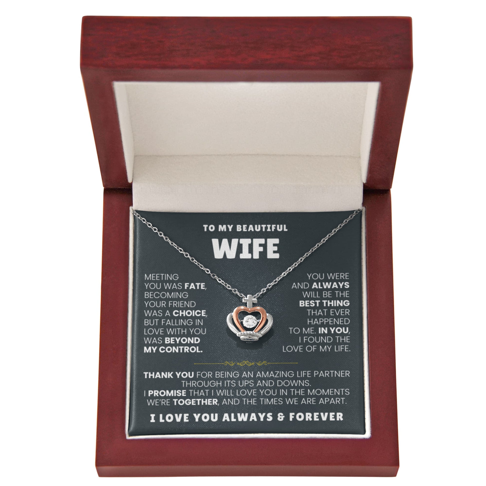 To My Wife Necklace - Meaningful Jewelry Gift from Husband for Valentine’s Day & Anniversary - Crown Pendant Necklace