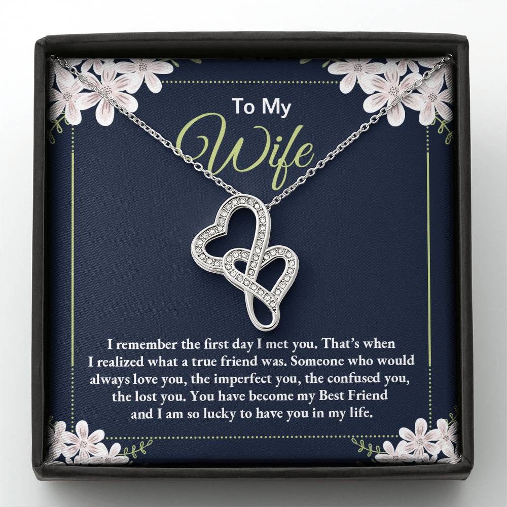 To My Wife Necklace - Meaningful Romantic Gift for Wife from Husband for Valentine’s Day & Forever Love - Heart-to-heart Pendant Necklace