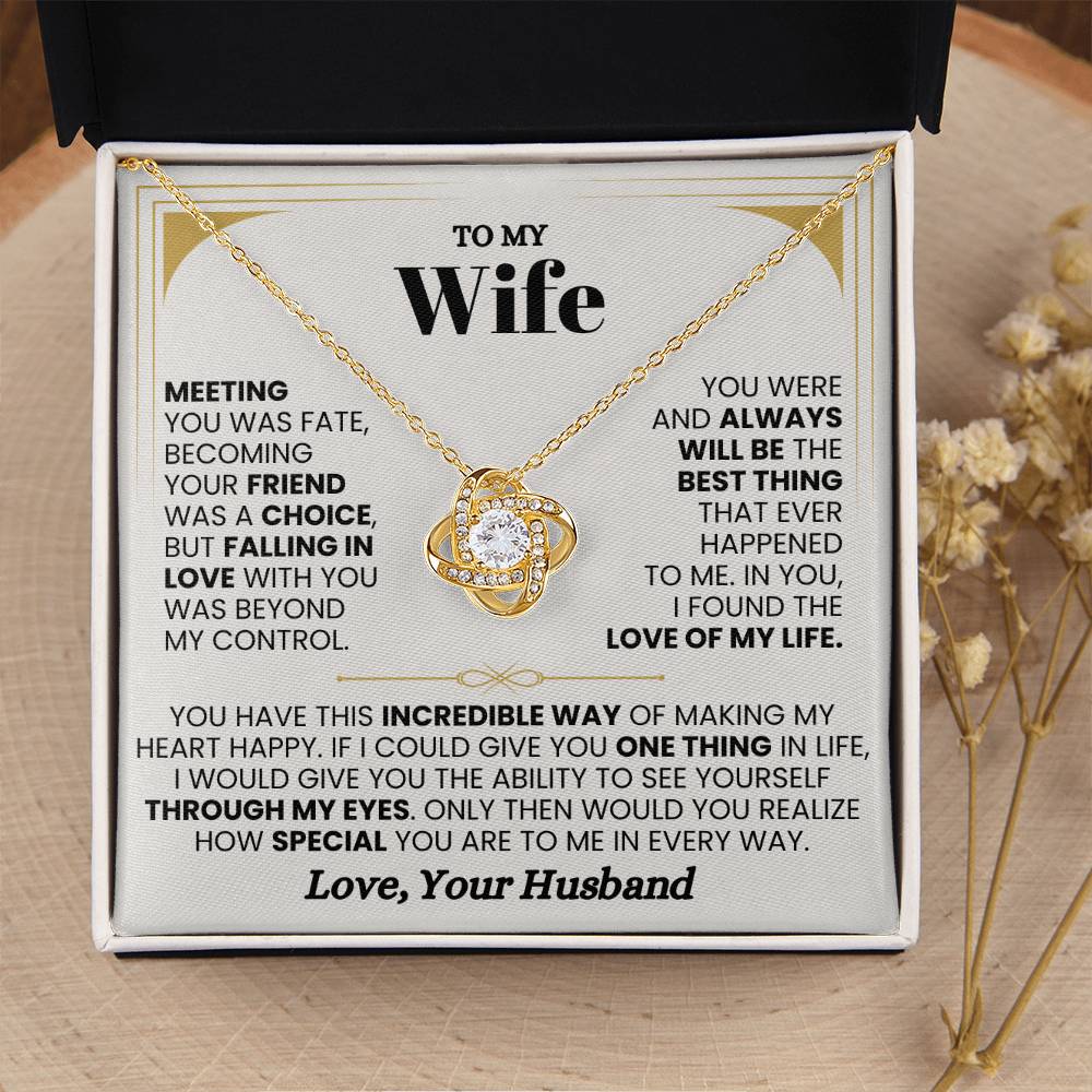 To My Wife Necklace - Romantic Birthday Jewelry Gift from Husband for Valentine’s Day & Long Lasting Memories - Love Knot Necklace